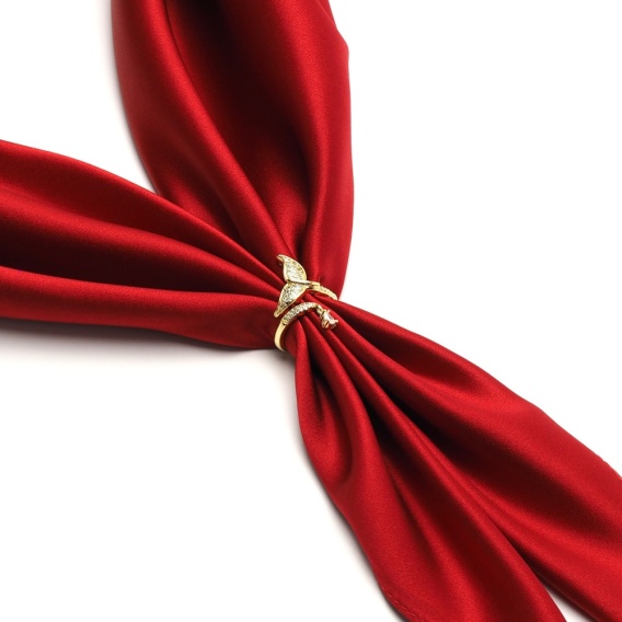 Mają Państwo przed sobą eleganckie, stylowe, wykonane z najwyższej jakości materiałów zapięcie do apaszek. Nasz pierścień do szala wygląda jakby był ozdobiony drogimi kamieniami, jest to jednak jedynie imitacja. Pierścienie do chust z naszej kolekcji dzięki specjalnie opracowanej formie świetnie utrzymują apaszki w oczekiwanym miejscu. Ta broszka do apaszki wykonana jest z wysokiej jakości metalu w kolorze złotym, co dodaje jej dodatkowego blasku i elegancji. Zapięcie do chusty jest unikatowe i wygląda naprawdę ekskluzywnie. Broszka do szala w takiej postaci jest bardzo prosta i wygodna w użyciu, pomaga utrzymać apaszkę we właściwym miejscu i dodaje jej dodatkowego blasku i uroku. Dzięki wysokiej jakości klips do szala pięknie się prezentguje z eleganckimi i stylowymi outfitami.