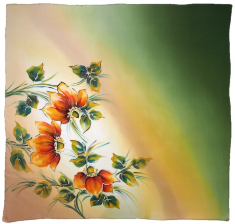 Apaszka jedwabna ręcznie malowana, Koniec lata 70x70cm AM7-718