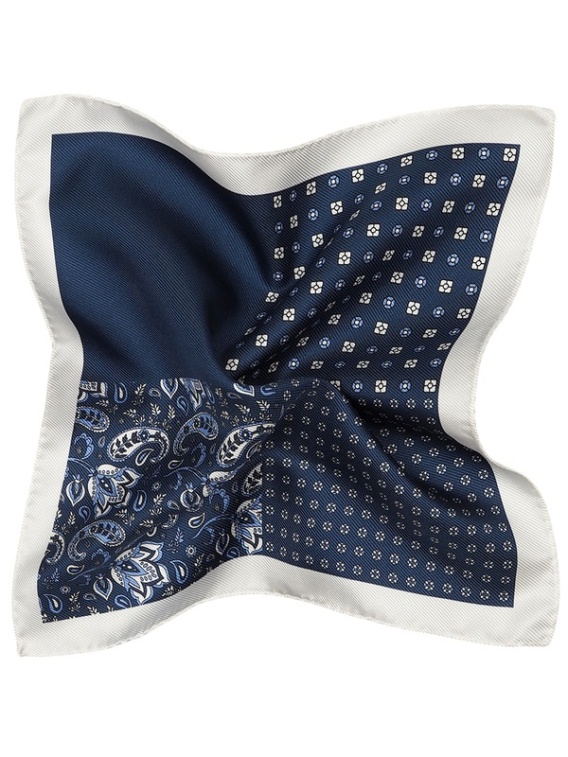 Poszetka męska ma kształt kwadratu, nie prostokąta. Najprostszym i najbardziej uniwersalnym sposobem na złożenie chustki do garnituru jest sposób na prosto (tzw. TV fold), w kształt trójkąta, puff czy mountain fold by ładnie wyeksponować wzór poszetki.