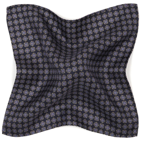 Navy Blue Silk Pocket Square with Micro Pattern 30x30 cm PJ-396