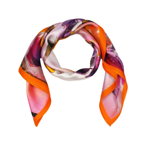 Orange silk scarf with flowers and fairy 68x68cm AD7-490