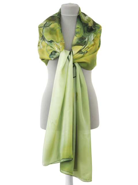 An elegant shawl for an evening gown is not only protection against the chill on summer evenings but also a beautiful decoration for the shoulders and neck. Thanks to its versatility, the thin shawl perfectly complements both classic and modern dress styles. Each of our silk women's shawls is hand-painted, making it a unique piece of functional art.