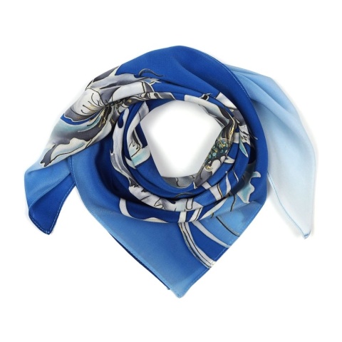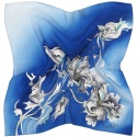 Gawroszka jedwabna ręcznie malowana, Niebieski kwiat 55x55 cm AM5-043