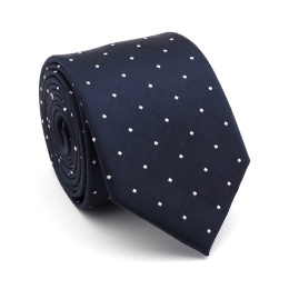 Jedwabny krawat żakardowy granatowy w kropki KR-560