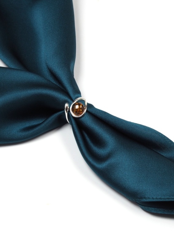 Niezwykle subtelna, pełna klasy srebrna apaszetka z naturalnym bursztynem bałtyckim doskonale komponuje się z delikatnym blaskiem jedwabiu dodając niezwykłego uroku. Ten pierścionek do apaszek jest niezwykle uniwersalny. Dzięki regulowanemu obwodowi pasuje zarówno do jedwabnych tkanin jak i innych materiałów, podkreślając ich piękno i nadając im dodatkowego blasku.