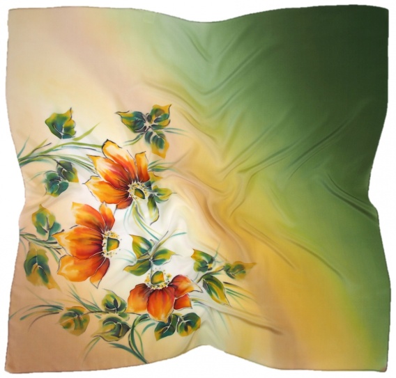 Apaszka jedwabna ręcznie malowana, Koniec lata 70x70cm AM7-718