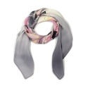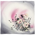 Hand-Painted Silk Scarf with Floral Motif, Grey and Pink, 70x70cm – AM7-729