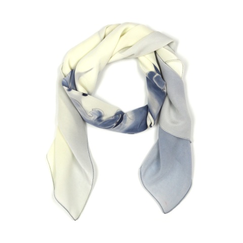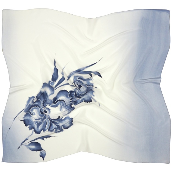 This elegant silk scarf in subtle shades of blue and gray is a true expression of feminine charm. The floral pattern, enhanced with shading effects, creates a harmonious composition that adds sophistication to any outfit. Perfect for both casual attire and elegant dresses, it enchants with its luxury and refinement. The soft texture gently wraps around the neck, shoulders, and head, bringing a sense of lightness and class. Did you know that wearing a scarf on the head combined with a baseball cap is the latest fashion trend, especially among young women?