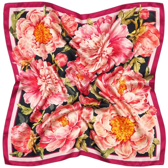Jedwabna apaszka dwustronna piwonie 53x53cm AD5-006