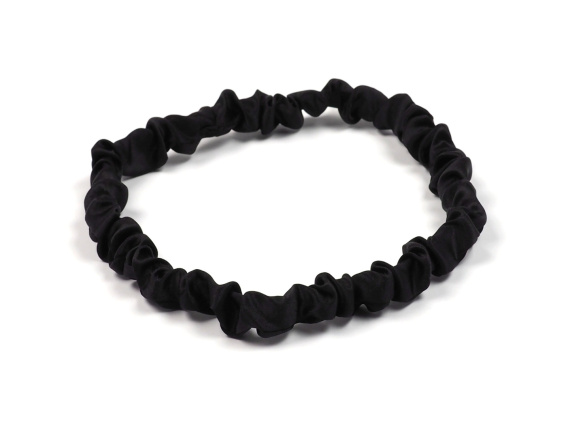 Marszczona czarna jedwabna opaska na głowę z gumką JO-023
