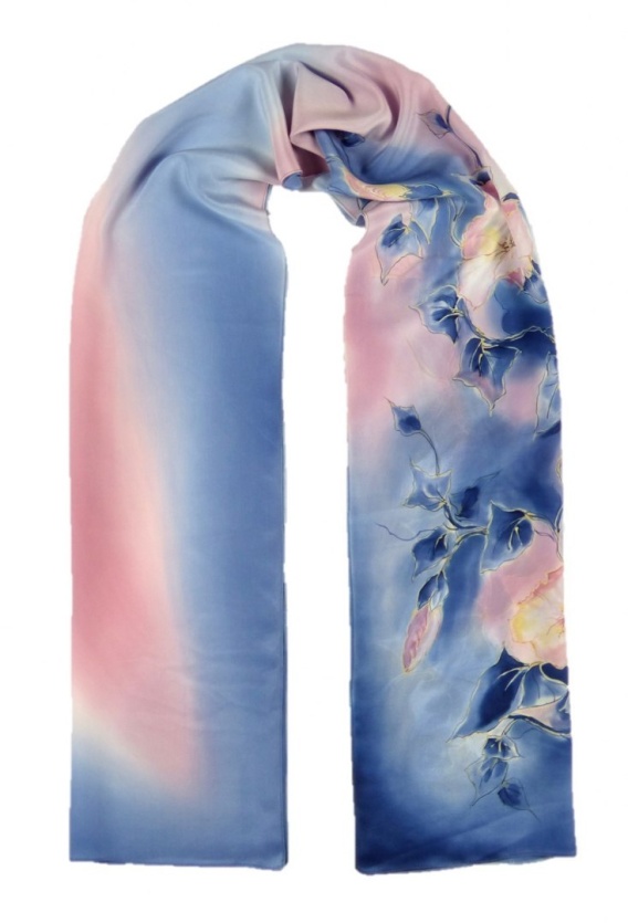 SZ-222 Blue-pink hand painted silk long scarf, 170x45 cm