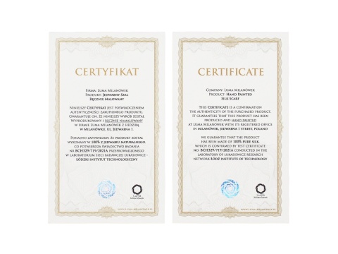 Each of our hand-painted product is unique and different from the original, which is visible in the image. In order to be expected that delivered scarf or shawl can differ slightly from the color in the picture. The perception of color affect settings including contrast and brightness of the monitor as well as the intensity and color of light in which we do image silk products. Finally, the same duplication or geometric patterns of floristic never made a template. Each line is unique, each flower is different, as well as the number of elements is not always the same on the same model. Please take into consideration the specifics of the implementation process of products "hand made" and the acceptance of minor exceptions.