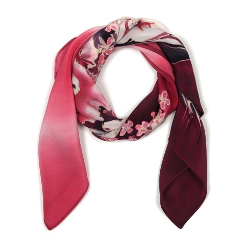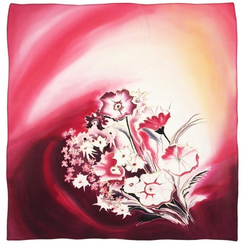 Apaszka jedwabna ręcznie malowana, Rubinowy ogród 70x70cm AM7-003