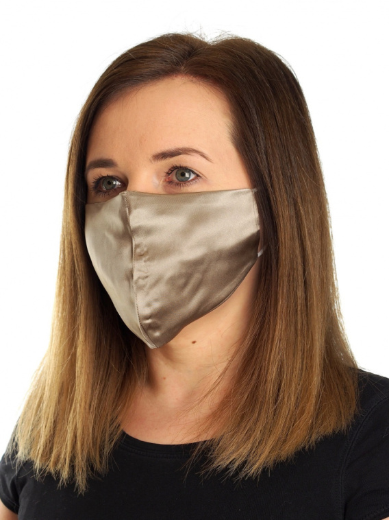 Hipoalergiczna jedwabna maseczka ochronna na twarz - ciemny beż